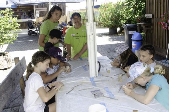 30 begeisterte Jugendliche im Alter von 7 –12 Jahren sowie 12 erwachsene Betreuer bilden das diesjährige Naturcamp im Vogelparadies in Mauren.