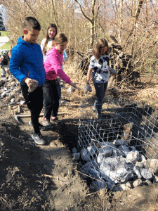 Gestaffelt arbeitete die Schülerschaft mit Schaufel und Pickel, Harke und Spaten an verschiedenen Punkten für mehr und vielfältigere Natur. Mit Hilfe des Forstes und der Werkgruppe wurden die Plätze bestimmt und das nötige Material beschafft.