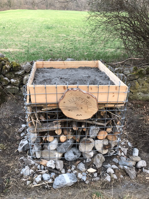Kleintierhotels wurden erstellt – für Wiesel, Igel, Käfer und Schmetterlinge, Ast- und Schilfhaufen aufgeschichtet für Vögel und Reptilien, Magerstandorte mit Kies und Sand aufgefüllt für Wildbienen.