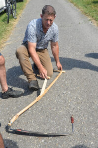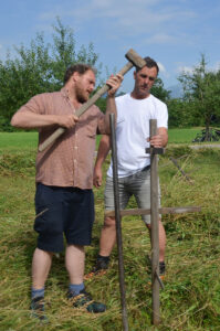 Eine Blumenwiese wird erst ein Erfolg, wenn sie richtig gepflegt wird. Dabei ist wichtig, dass die Samen nicht verloren gehen und unerwünschtes Unkraut und Neophyten gleich schon eliminiert werden . Der beste Weg dazu ist, die Wiese mit der Sense zu mähen und das Gras trocknen zu lassen. Einen Weg dazu zeigte der OV Vaduz auf: Jürg von Känel, unterstützt von OV-Mitgliedern, erklärte den sehr vielen Interessierten alles, was zum Mähen mit der Sense dazugehört: Das richtige Werkzeug, die wichtigsten Einstellungen, die Haltung, das Schärfen des Sensenblatts und am Schluss noch das Dengeln. Die Stimmung war ansteckend: Gross und Klein, Männlein und Weiblein versuchten sich beim Mähen und beim Heinznen.